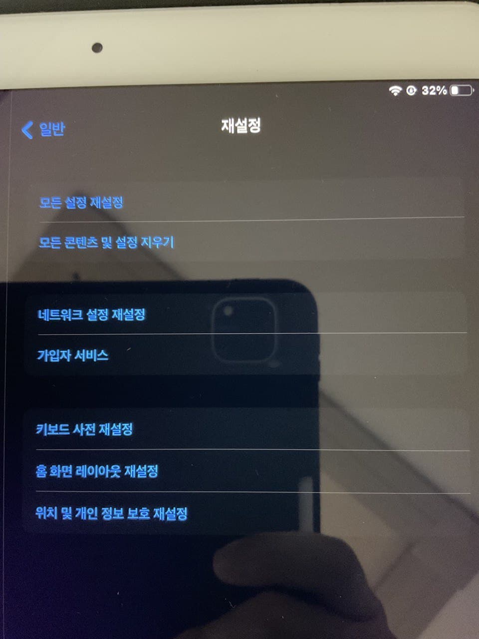 설정 - 일반 - 재설정 항목으로 들어간 뒤