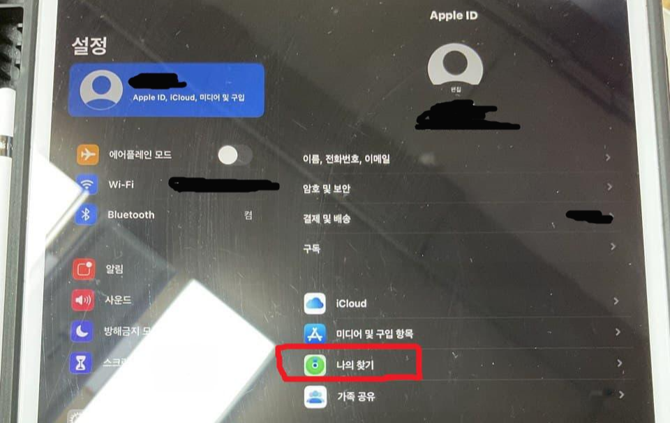 가장 먼저 해야 할 것은 나의 기기 찾기를 해제하는 것입니다.