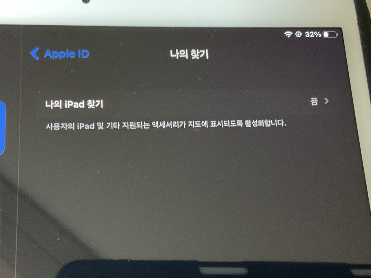 나의 아이패드 찾기를 꺼줍니다. 2.
