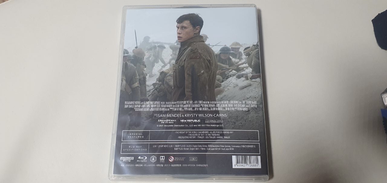 이번에 배송된 4K 블루레이는 영화 1917입니다.