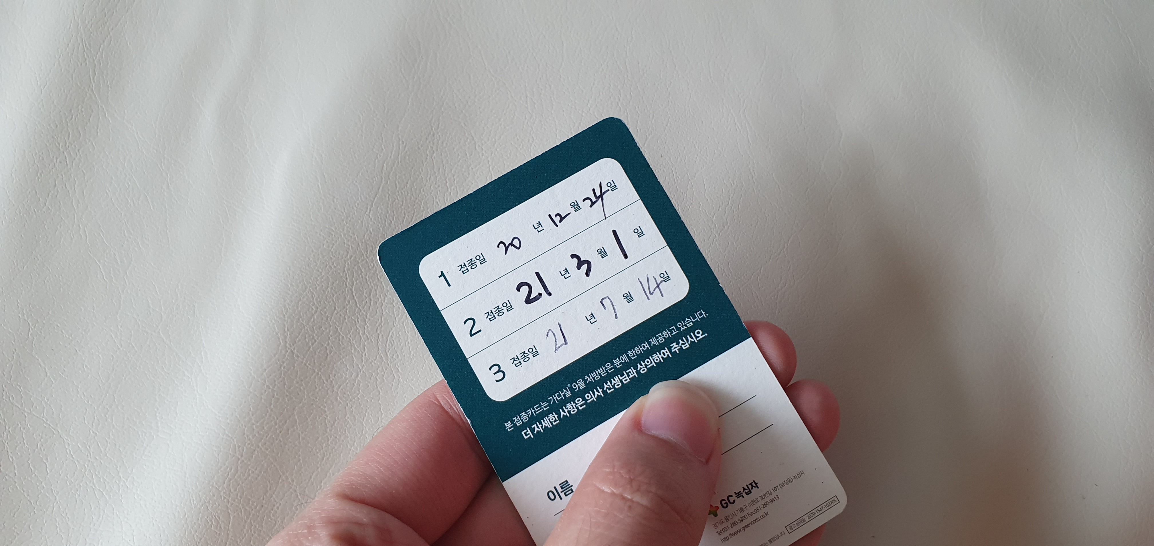 저는 일 때문에 시간을 못맞추다 보니 2주씩 늦게 접종을 하게 되었습니다.