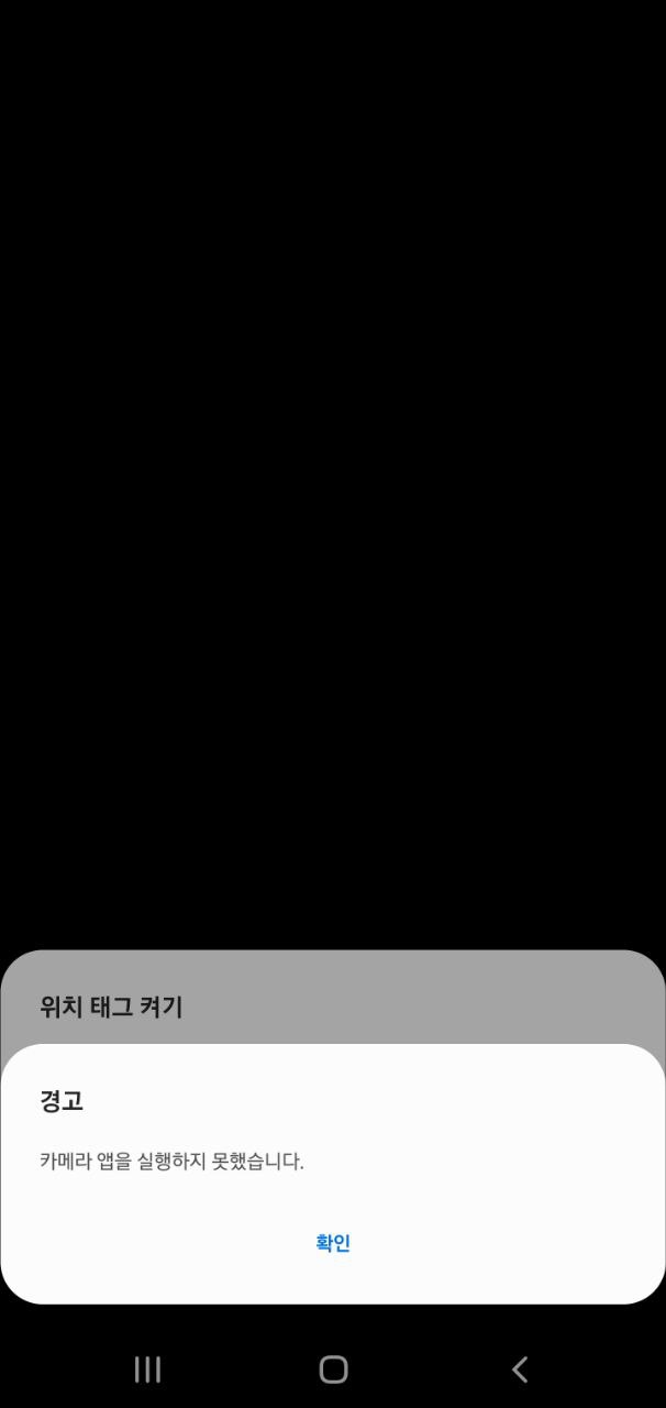 카메라를 실행 할 수 없다는 알림이 뜨면서 아예 카메라가 실행되지 않는 것입니다.