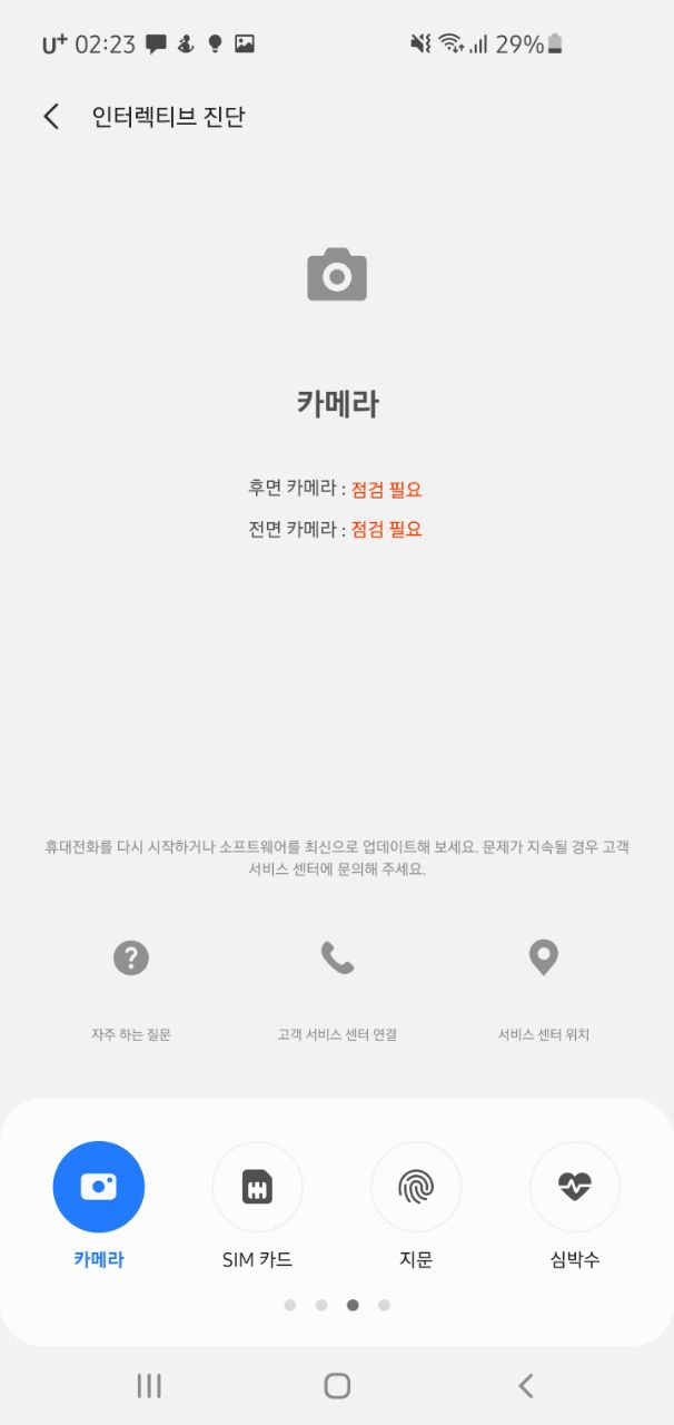 그리고 전면카메라는 정상적으로 작동하지만 후면카메라가 문제였다고 합니다.