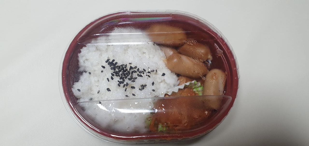 일본판과 달리 한국식의 도시락 메뉴는 밥과 소시지 그리고 볶음김치가 들어갔습니다.