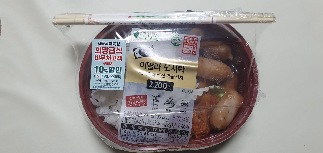 바로 이딸라도시락이라는 식품입니다. 이름 그대로 가격은 이딸라, 2200원입니다.