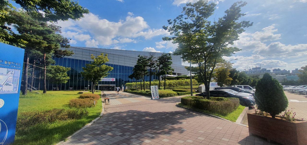 동구 예방접종센터인 송림체육관에 도착한 모습입니다.