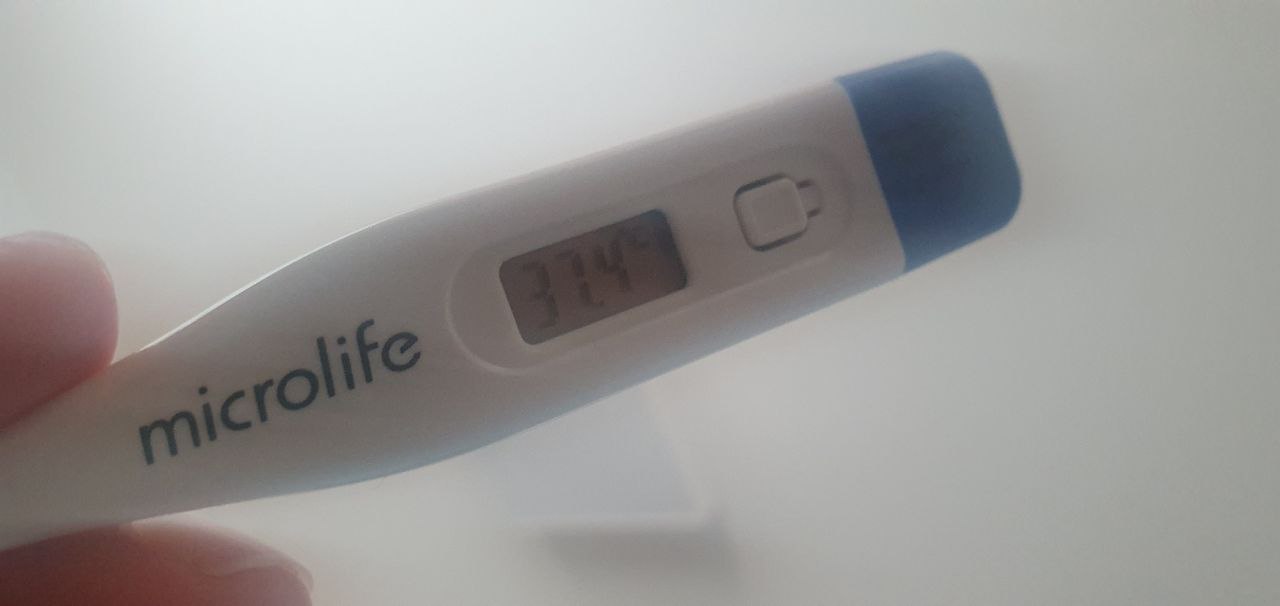 체온계는 접종 부위인 왼쪽 팔의 겨드랑이에 끼우는 방식의 체온계였습니다.