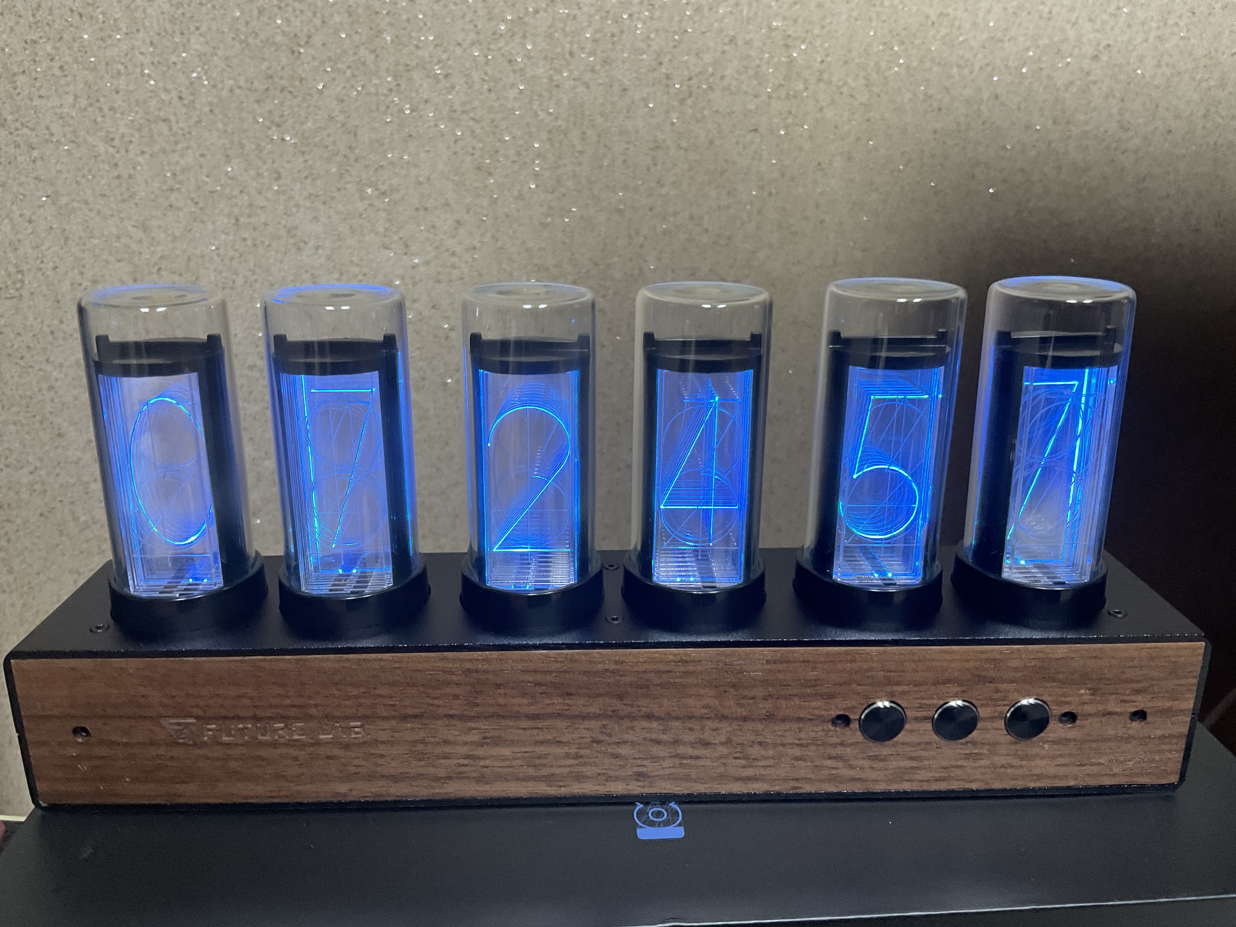 그래서 요즘엔 실제 닉시 진공관 대신에 진공관 형태로 된 LED등으로 시계를 만든 제품이 하나씩 출시되고 있습니다. 다양한 형태로 출시가 되고있는데 작품 속에서 처럼 길쭉한 형태의 유리관으로 구성된 시계가 퓨쳐랩 제품밖에 없어서 그걸로 구매했습니다.