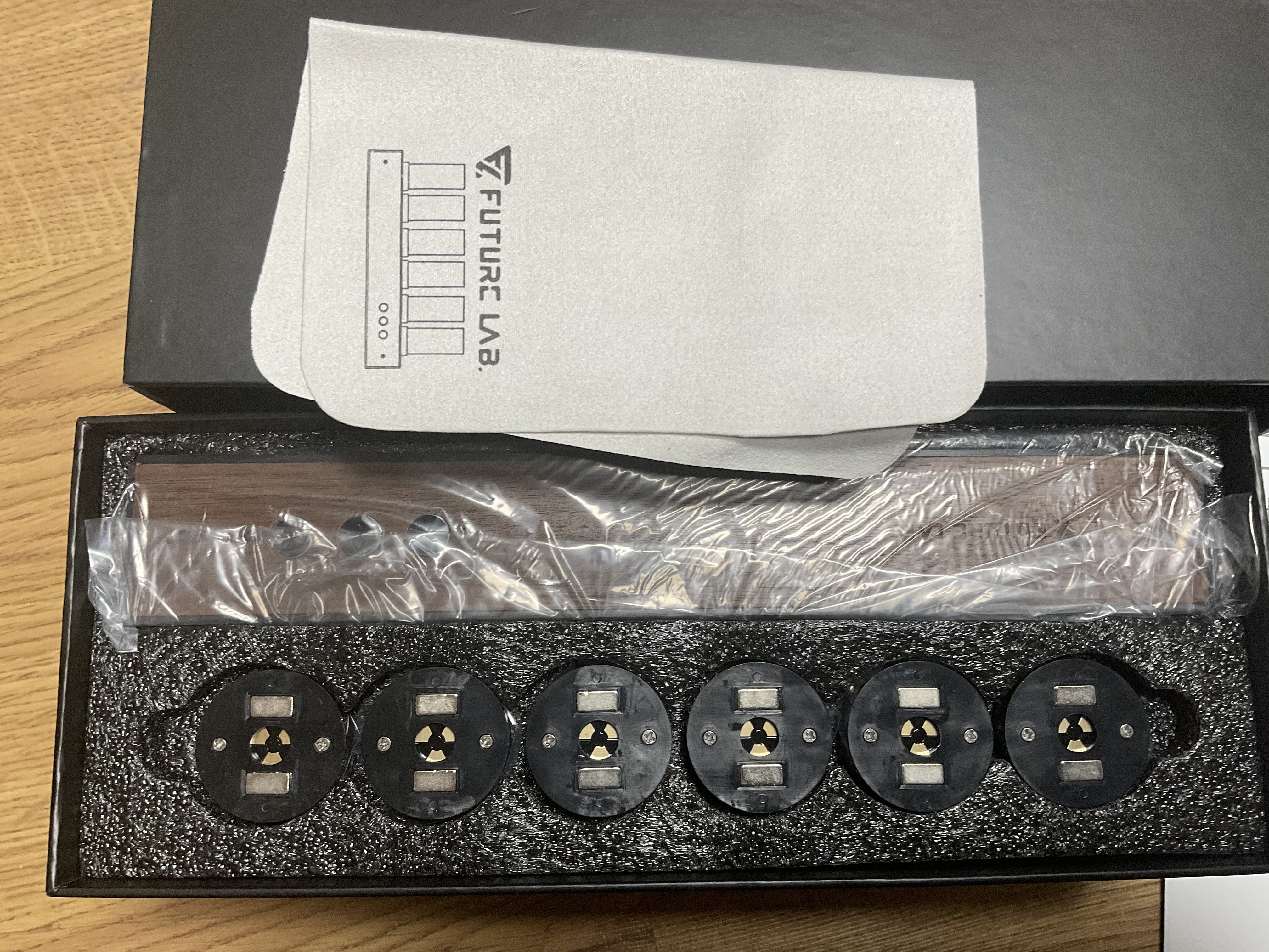 윗면에는 진공관들을 부착하는 홈이 파여져 있고, 맨 오른쪽 끝에는 12시간, 24시간 기준으로 시간표시를 전환하는 장치가 있습니다.