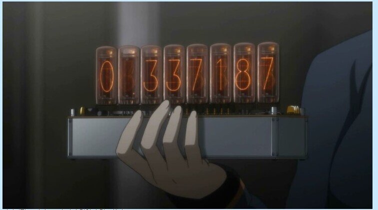 시간을 오가는 내용이었는데 시간을 여행한 세계관이 세계선이 아예 갈라졌는지 수치로 나타내주는 다이버전스 미터기가 등장합니다. 유리로 만들어진 닉시 진공관을 이용해 수치를 표시하는 도구인데, 아날로그 감성이 제대로 묻어나는 도구다 보니 해당 작품의 팬들이 실제로 다이버전스 미터기를 만들기도 하고, 나중엔 공식 굿즈 상품으로도 발매가 되기도 했습니다.