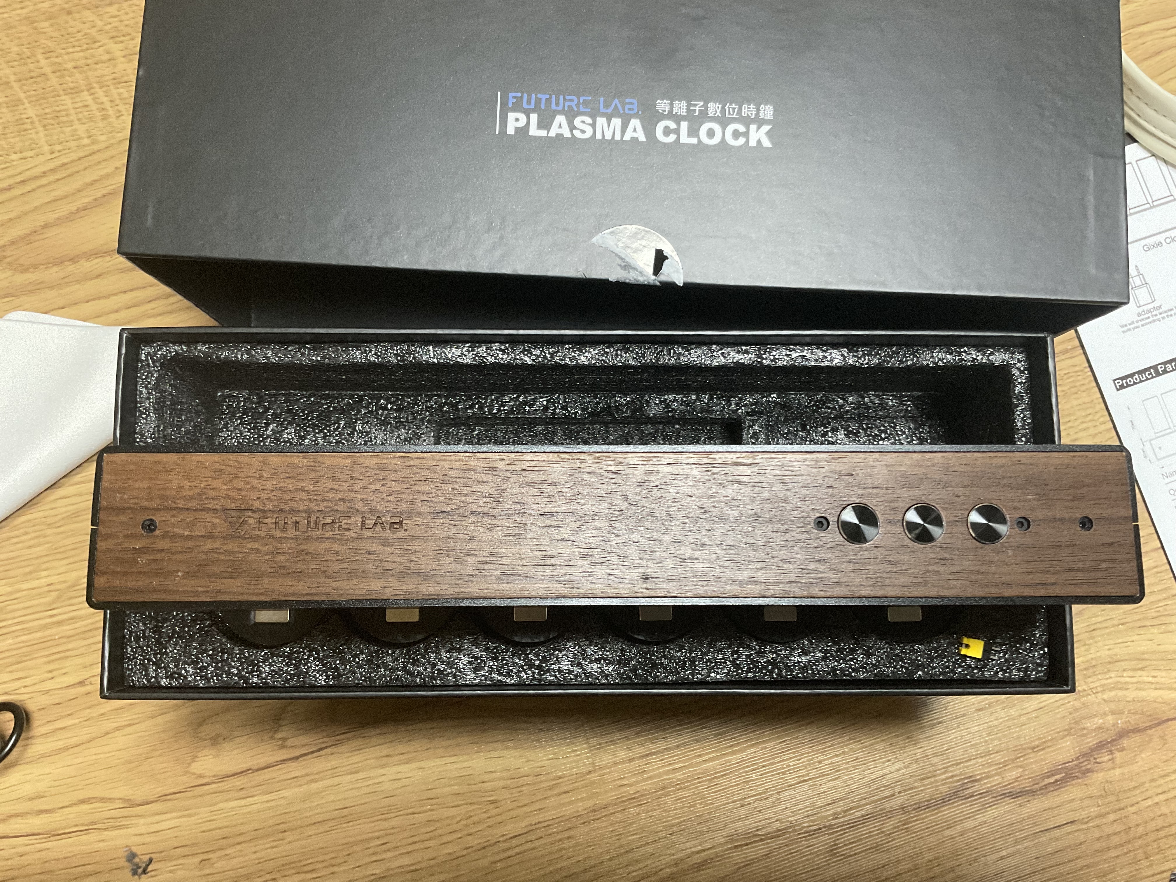 제품은 퓨쳐랩에서 출시한 플라즈마 진공관 시계입니다.