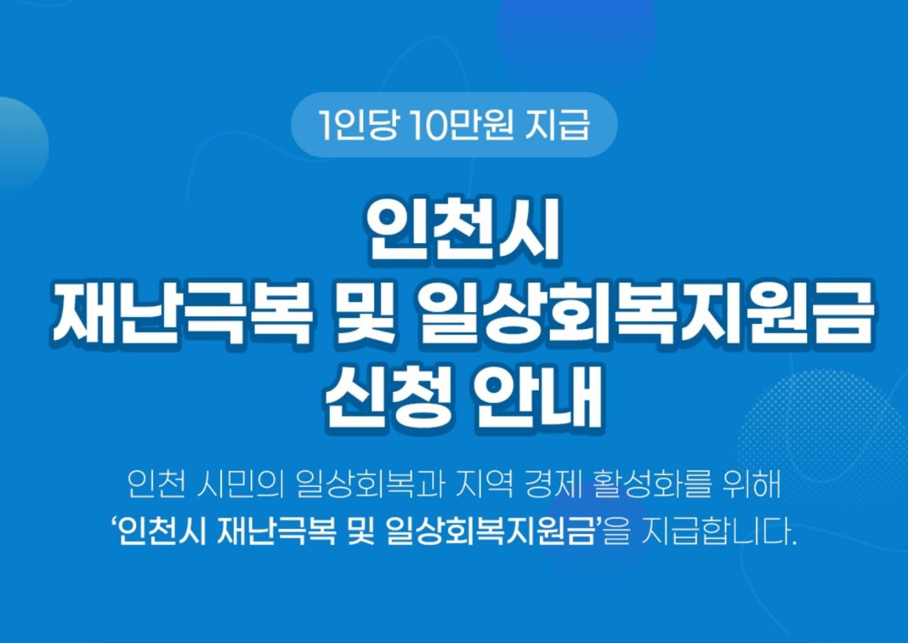 인천시민 전원에게 10만원의 재난극복 및 일상회복지원금을추가로 지급하기로 결정했습니다.