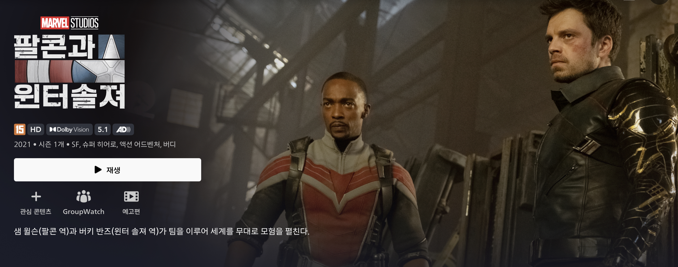 11월 한국 론칭 당시에는 완다비전, 팔콘과 윈터솔져, 로키가 이미 다 완결난 상태로 공개가 되었고,