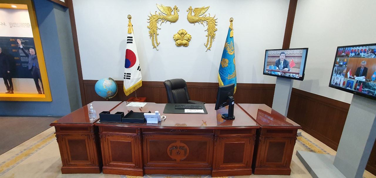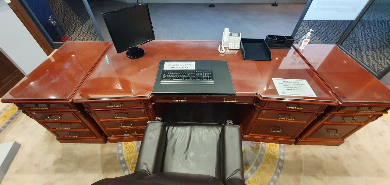 2층에선 문재인 대통령 집무실을 재현한 공간과 국정 홍보 내용들이 전시되어 있습니다.