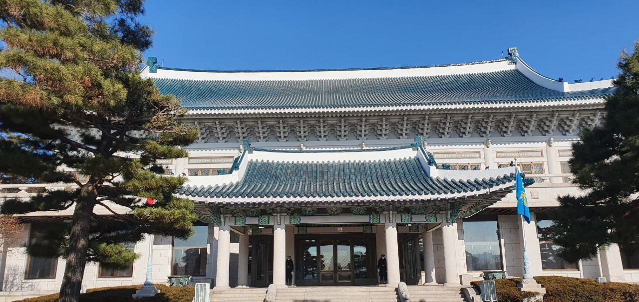15만개의 청기와로 덮힌 지붕이 있는 건물인데 1층에 인왕실이 있고 2층에 대통령 집무실이 있다고 합니다. 왼쪽은 세종대왕을 기리는 의미로 세종실이라는 건물인데 여기서 국무회의가 매주 화요일 오전 10시에 열린다고 합니다. 그리고 세종실로 가는 길목에 역대 대통령의 초상화가 걸려있다고 합니다. 오른쪽은 충무공 이순신장군을 기리는 의미로 충무실이란 건물인데 이 곳에선 장관이나 주요 인사의 임명식이 열리는 장소로 활용된다고 합니다.