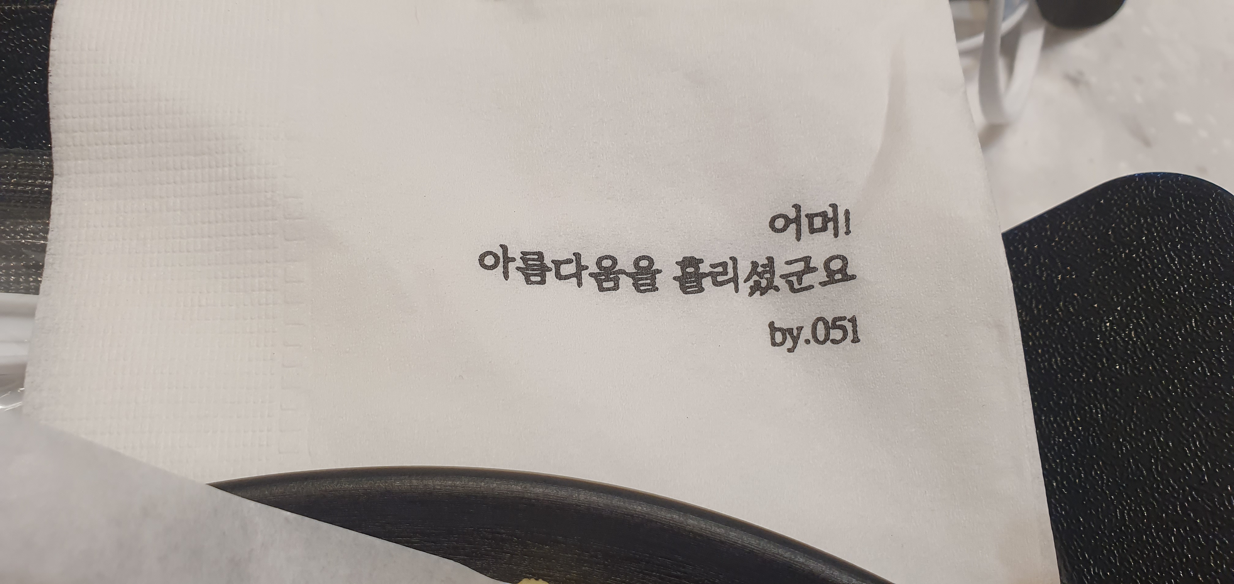 여기 커피 전반적으로 맛있더군요. 그리고 티슈에 센스있는 문구가 적혀있습니다. 인상적이었습니다.