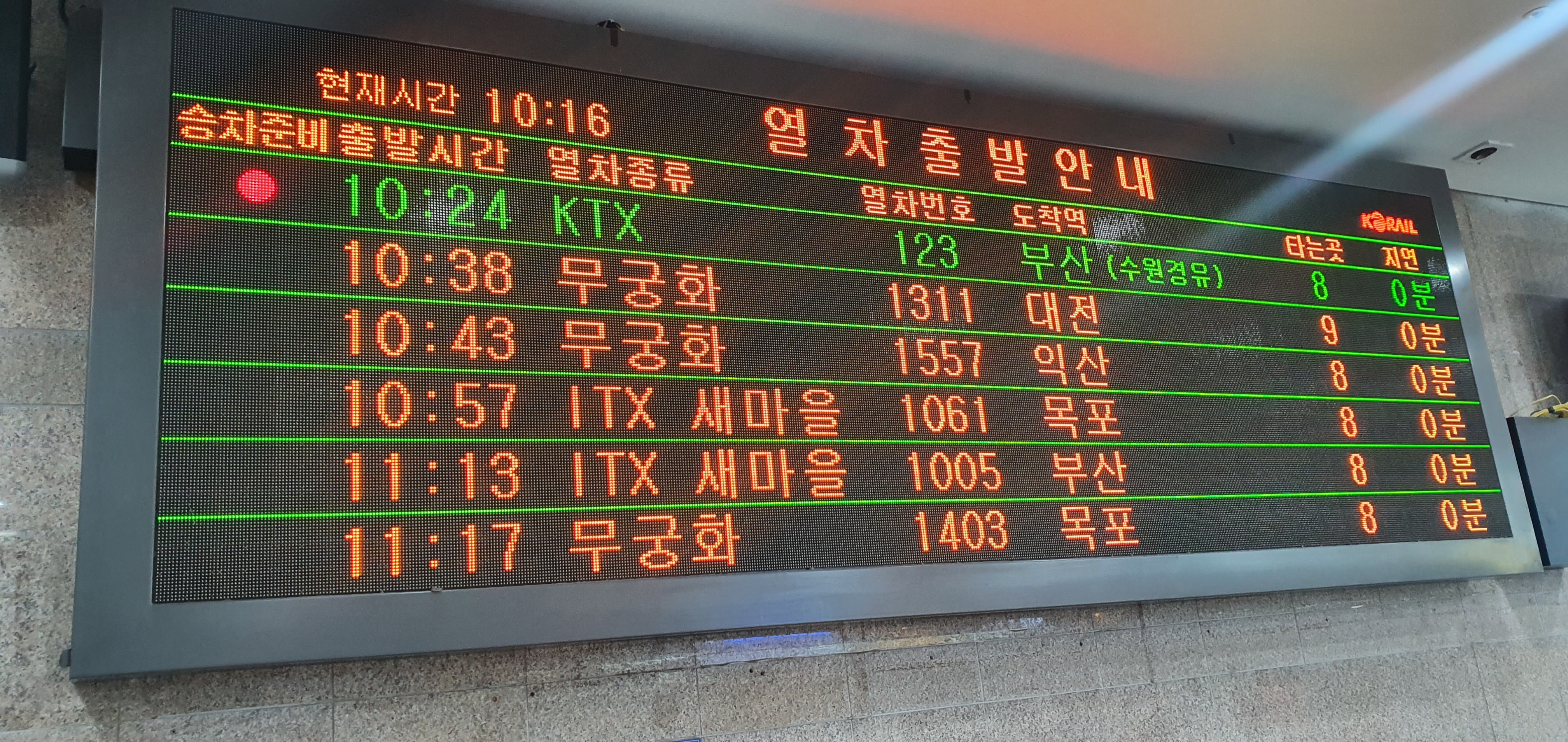 그래서 대전까지는 약 2시간이 걸리고 부산까지는 3시간이 넘는 시간이 소요되지만 대신 열차 비용이 48000원대로 저렴하게 갈 수 있습니다.