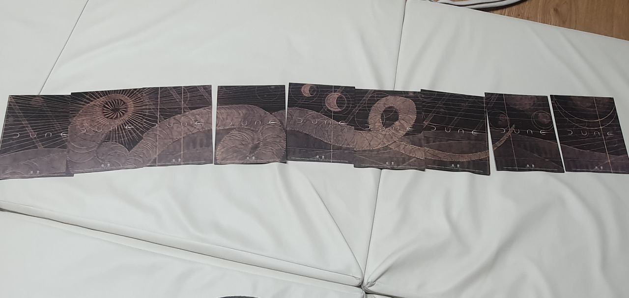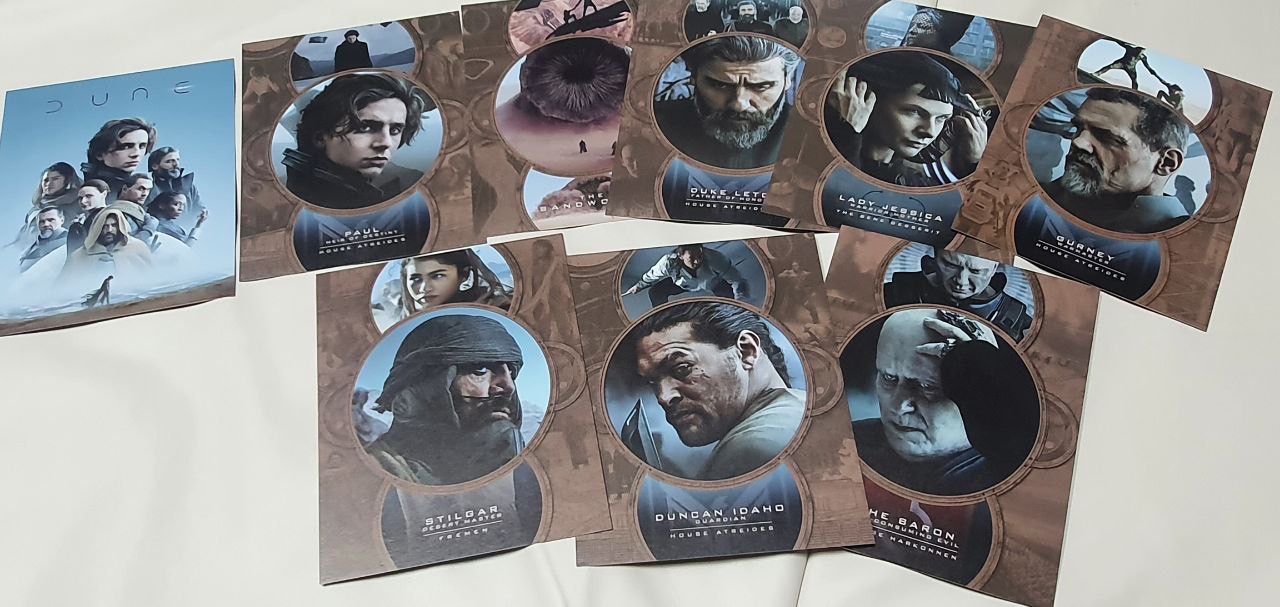 9장의 캐릭터 카드들입니다. 뒷면으로 펼치면 이 9장의 카드가 거대한 모래벌레, 샤이 훌루드 그림으로 이어집니다.
