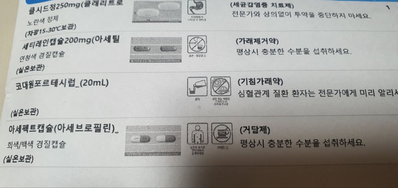 호흡기 쪽엔 딱히 이상이 없어서 기침, 기관지약을 처방받았습니다.