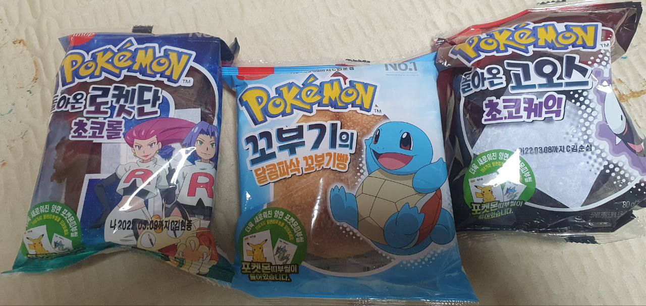 일단 저는 로켓단 초코롤, 피카츄 치즈케익, 꼬부기빵과 고오스 이렇게 4종류로 총 5개를 구매했습니다.