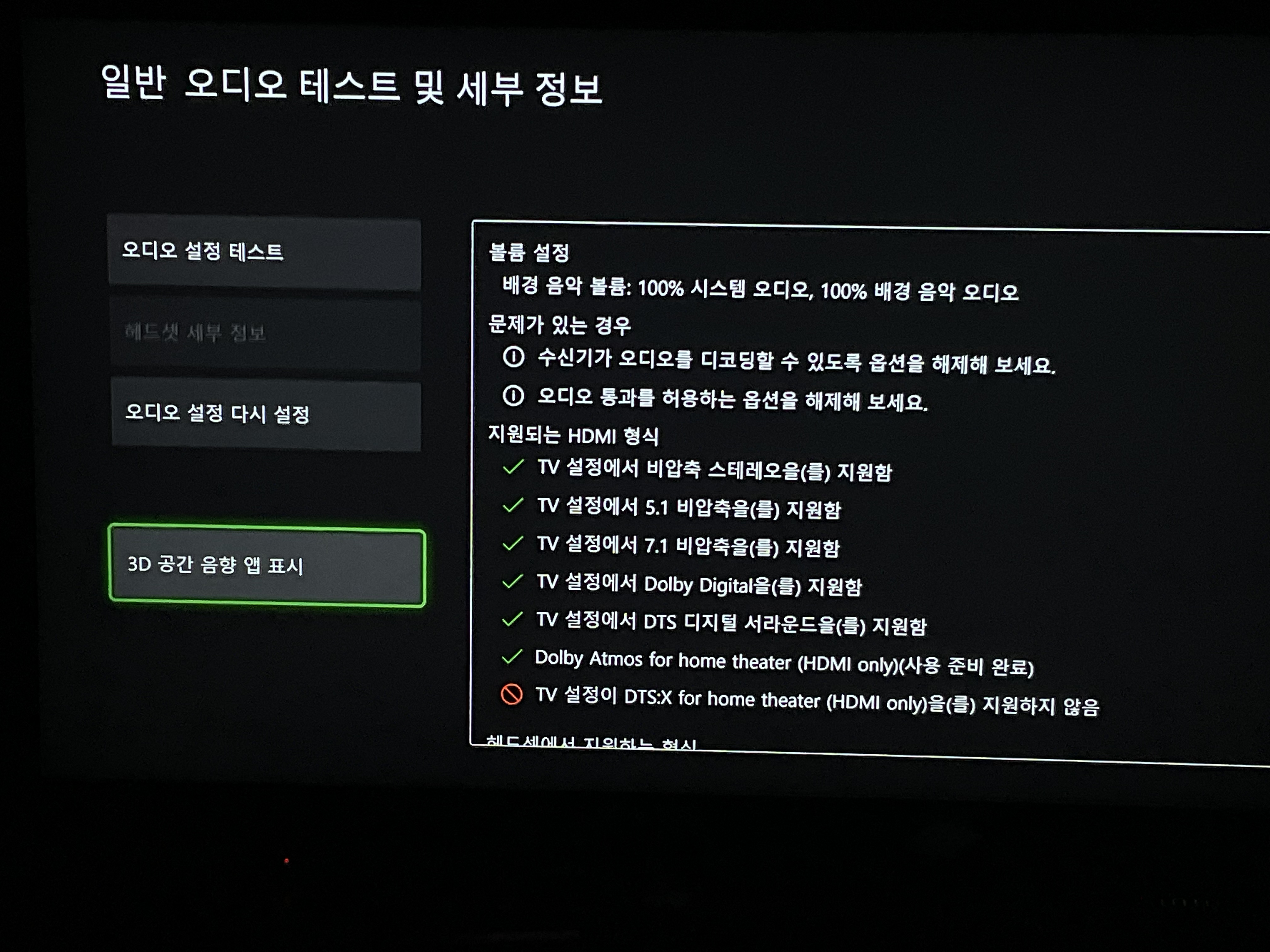 단, 헤드폰으로 돌비애트모스나 DTS:X 포맷을 체험하시려면 엑스박스 기기를 통해서 돌비 앱이나 dts앱을 다운받아 실행한 후 별도의 설정을 하셔야 합니다. (정확하진 않지만 아마 결제를 해야 하는 경우도 있는 것 같습니다.)