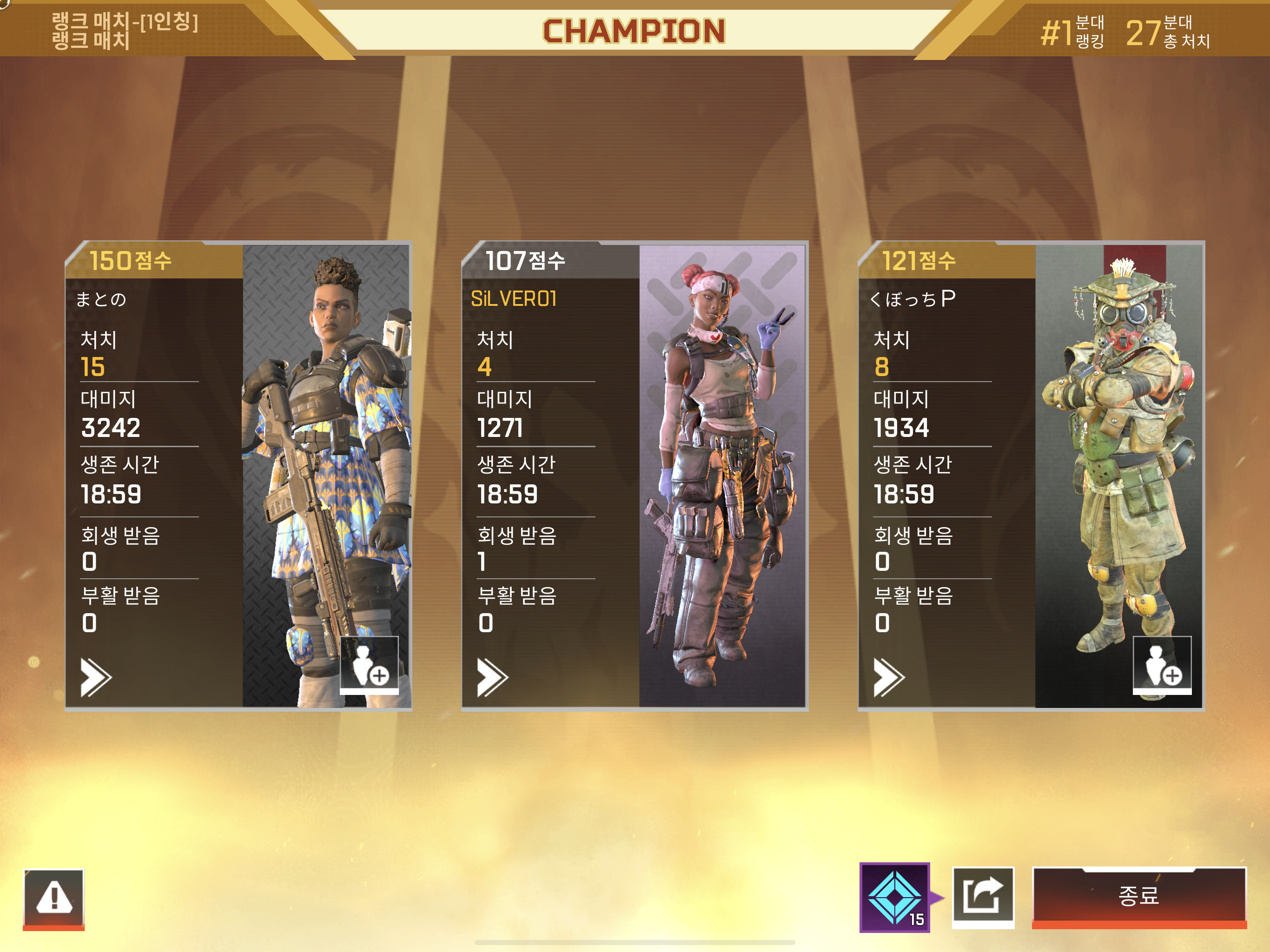 그리고 PC버전에서는 시도조차 안했던 랭크게임 모드를 플레이하고 있습니다.