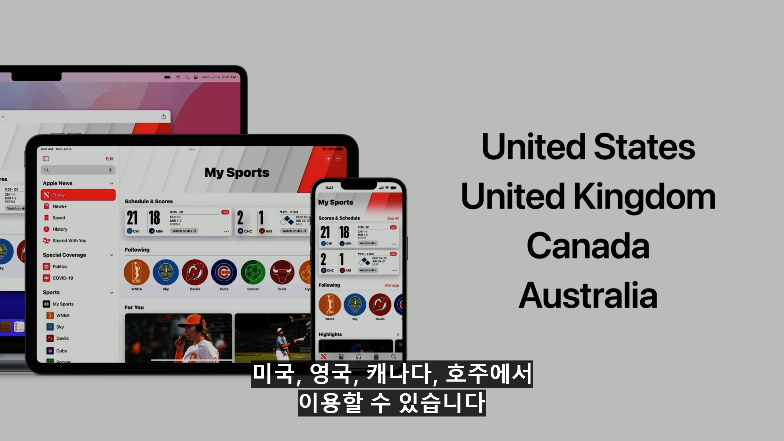 애플뉴스 : 스포츠 뉴스등을 구독해서 나의 팀의 경기 결과나 일정을 확인 가능 북미, 영국, 호주에서만 일단 적용