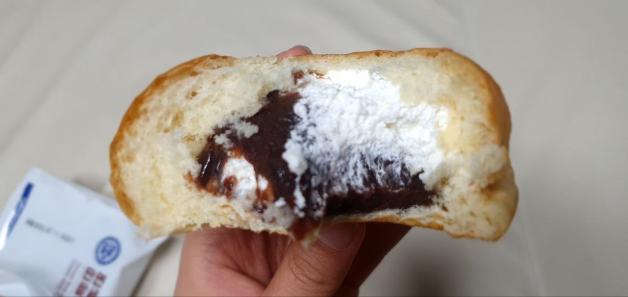 밑 부분엔 팥 앙금이, 윗부분에는 우유생크림이 가득 들어있는 구조입니다.