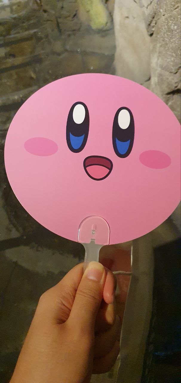 또 현장에서는 닌텐도 스위치 어카운트를 연동하고, SNS에 팝업스토어 해시태그를 작성하고 직원에게 보여주면 커비 부채를 주는 이벤트가 진행되고 있습니다. 의외로 이 부채와 제일복권이 한정수량인 것 같습니다. 전체적으로 커비 팝업스토어는 각 물건이 판매가 되어 진열대가 비게 되면직원분들께서 바로바로 안에서 판매제품을 갖고 나와 진열대의 빈 자리를 채우고 있었습니다. 적어도 진열대에서 판매되는 제품은 계속 채워 놓는것 같았습니다. 하지만 제일복권이나 부채는 정말 한정수량인 것 같습니다.