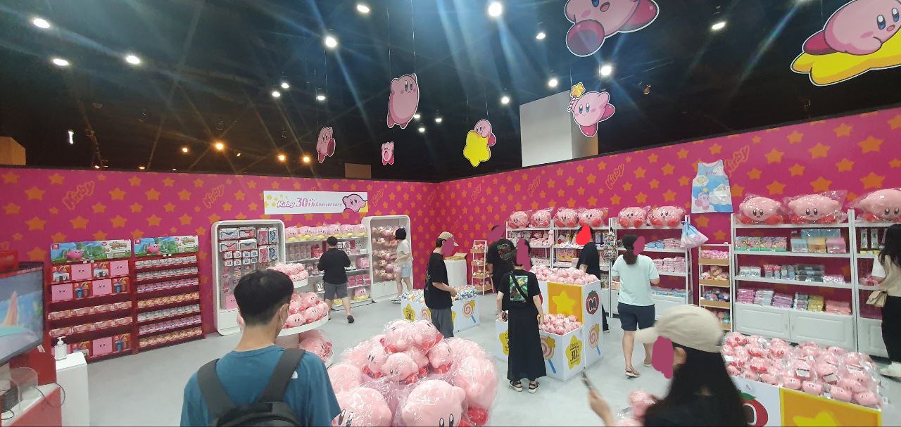 개장 당시의 인원은 성인 분들이 많으셨습니다. 그리고 어린 아이들과 부모님이 함께 오신 분도 종종 보였습니다. 이번이 최초로 열리는 커비 팝업스토어인 만큼, 커비 팬들이 원하는 물건들을 많이 구매하셨으면 좋겠습니다.