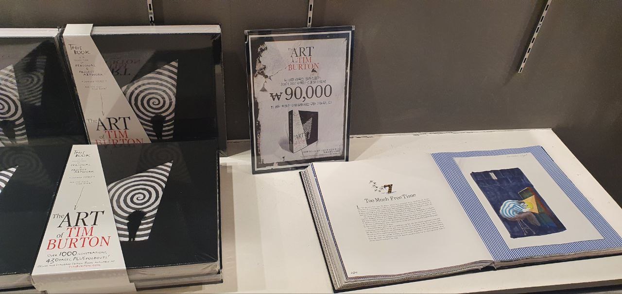 도록은 꽤나 무겁고 두꺼운데 가격은 9만원입니다. 한글 번역이 없는 영어 원서인데 이번 전시회를 통해서만 구할 수 있고, 또 팀 버튼 전시회가다시 한국에서 열릴 지 모르기 때문에 큰 맘 먹고 구매했습니다.