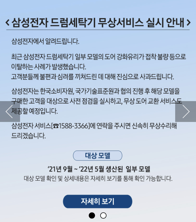 2022/08/18 삼성전자 드럼세탁기 무상서비스 실시 안내문 게시정보 2022. 8. 19. 00:08반응형