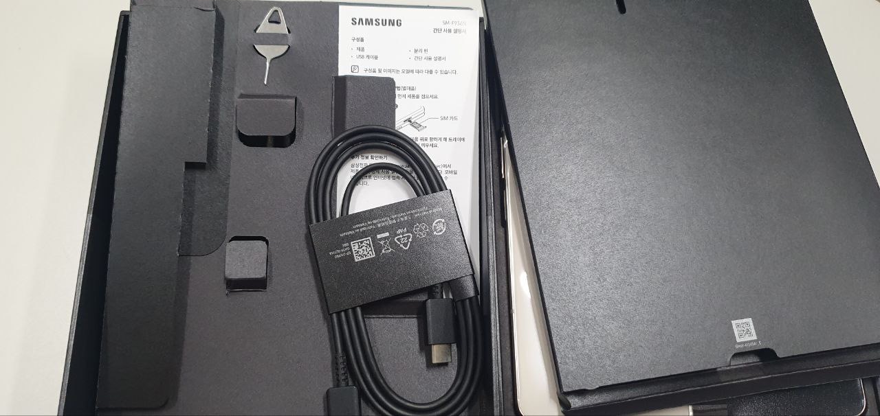 구성품으로는 그냥 유심 칩을 뽑을 수 있는 트레이 핀과 usb 타입 c 케이블, 그리고 간단 사용설명서가 전부입니다.
